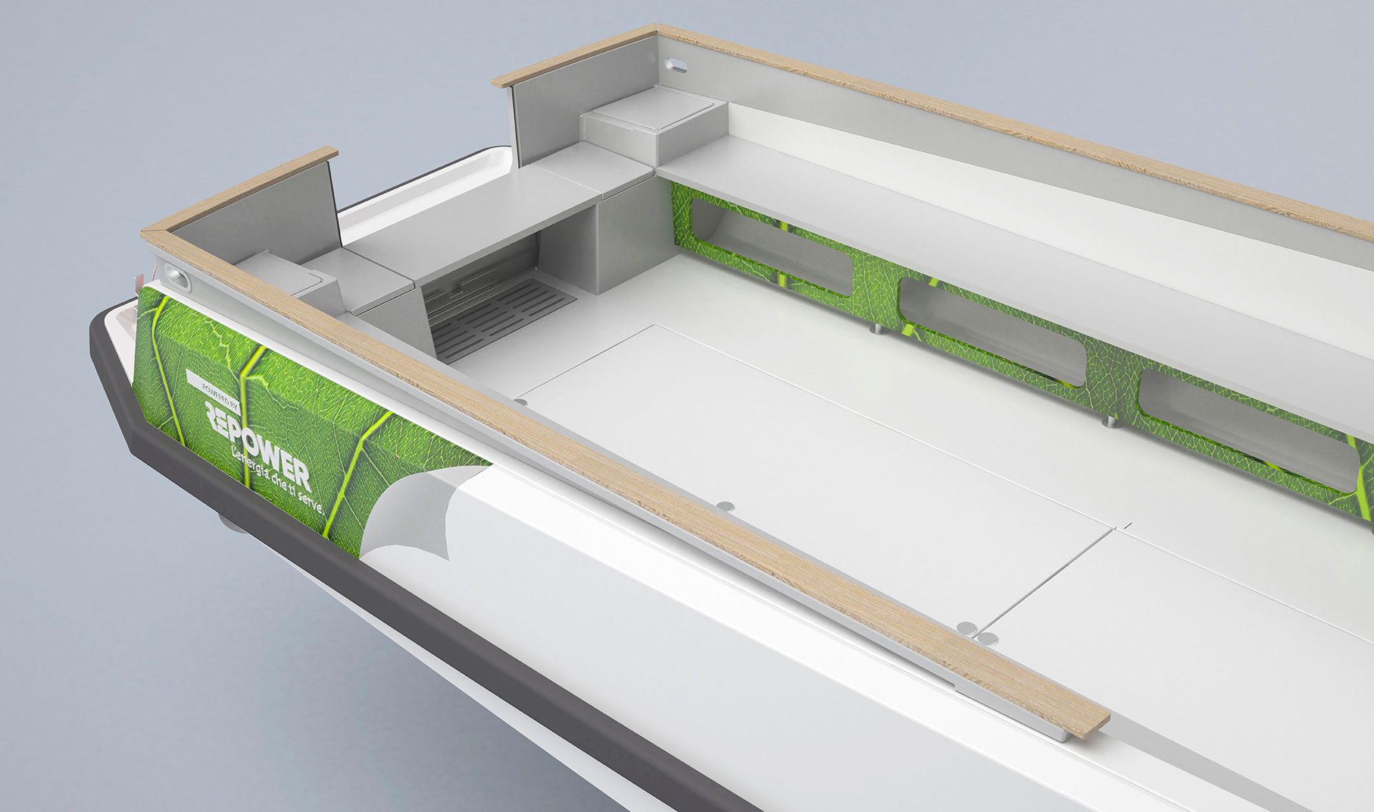 PENSATA PER IL TRASPORTO PUBBLICO, QUESTA IMBARCAZIONE COMPLETAMENTE ELETTRICA PUÒ TRASPORTARE FINO A 30 PASSEGGERI ED ESISTE ANCHE IN UNA VERSIONE LIMOUSINE.